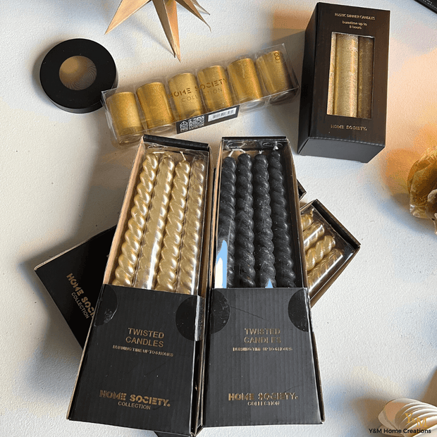 Deze kleinere dinerkaarsjes passen goed bij de woonaccessoires die Y&M aanbied.