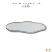 Deze prachtige organisch ovale tray, van metaal in de kleur ivoor, is echt een exclusief woonaccessoires die je niet veel zal tegenkomen. De ovale tray heeft een organische vorm die op dit moment echt een trend is.