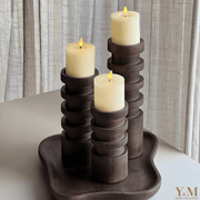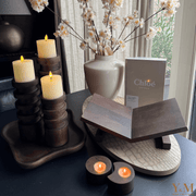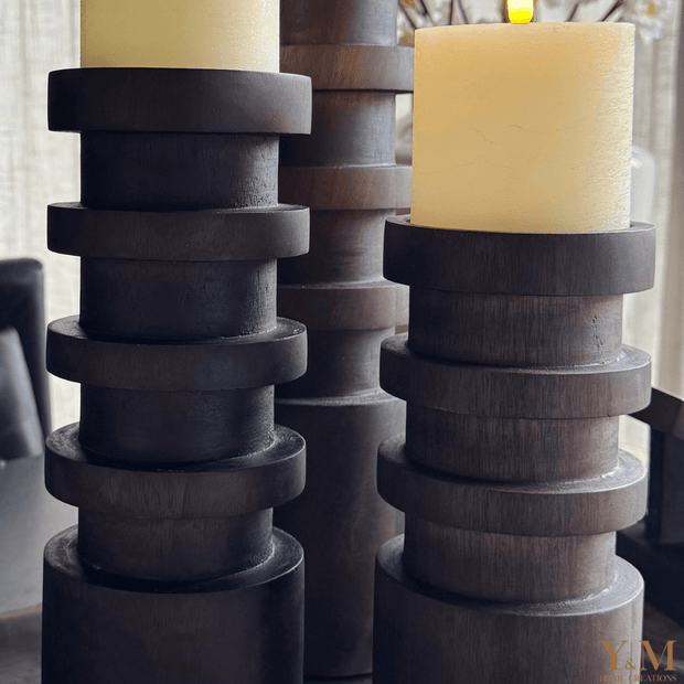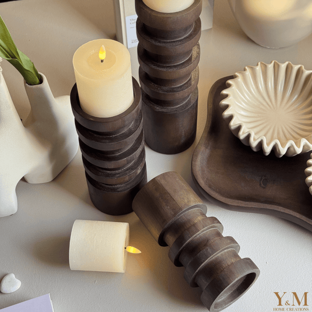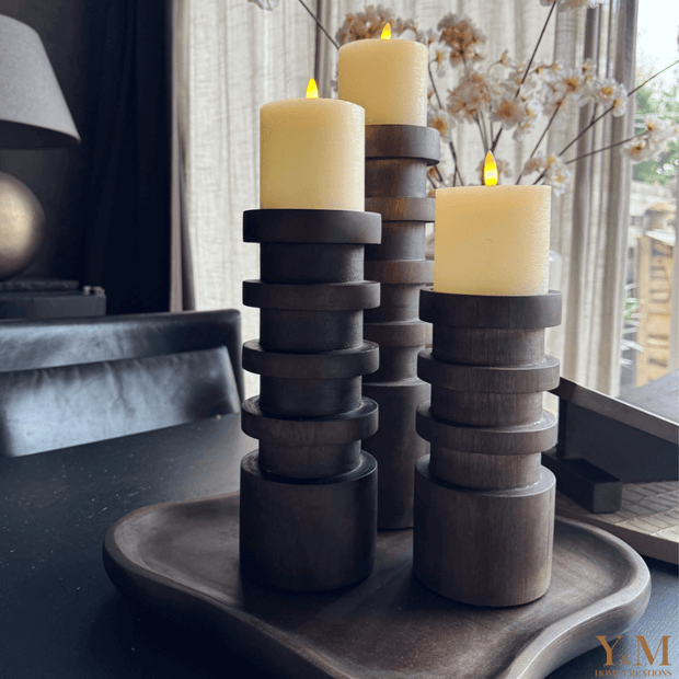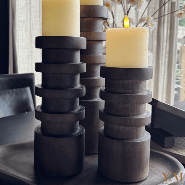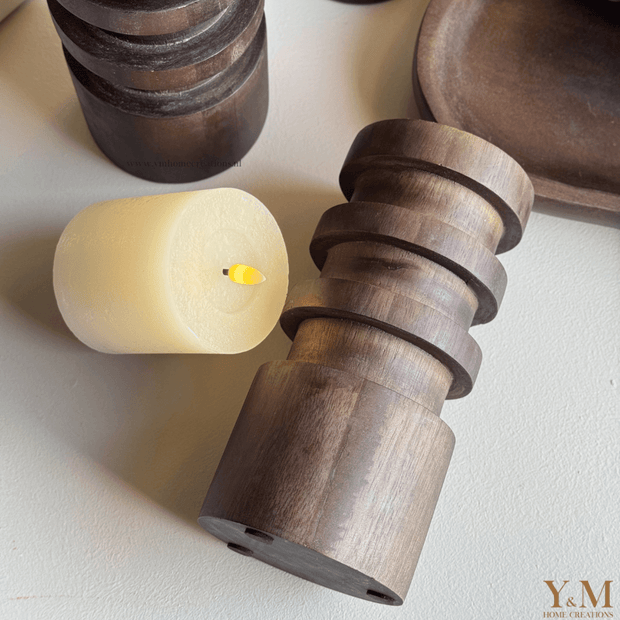 Prachtige chique design kaarsenhouders, gemaakt van warm walnut hout met een moderne strakke uiterlijk in de kleur bruin. Maak je interieur helemaal af met deze trendy, luxe, design kandelaars, met een prachtig chique uitstraling! Doe er een prachtige (LED) kaars op en je hebt een echte eyecatcher in jouw huis staan.